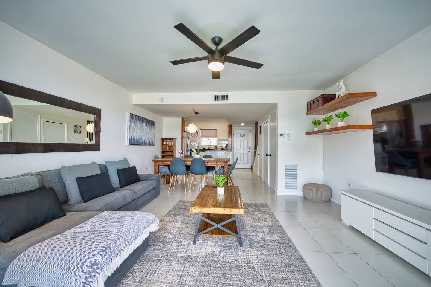 *Our 3 bed condo is spacious and full of light and right in the heart of 7mile beach. The 3rd floor room loft style room, is large and suitable for up to 3 kids (or comfortable for 2 adults also). Our place is perfect for 2 couples and 2-3 kids or 3 couples - let us know your combination and we can cater accordingly. -- A baby crib and high chair also available as needed. Bring your work with you and you can put your laptop on the desk and plug into a 30" UHD screen with high speed internet. Jump in the sea and snorkel right out front! views of the sea from most rooms, you can even see the sea while you shower in the fully renovated master bathroom. Easily cater for families with small children and babies also, just ask for details.