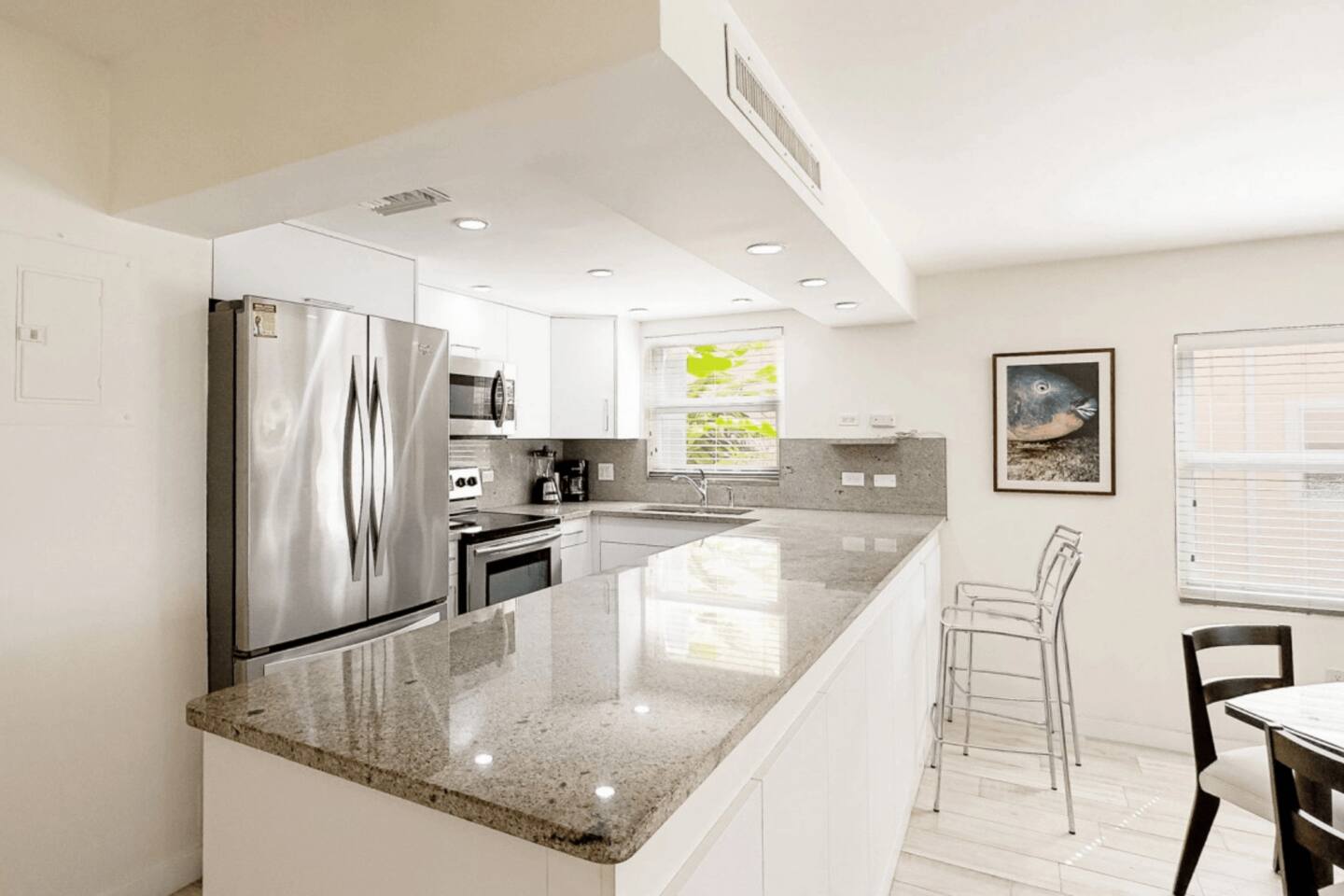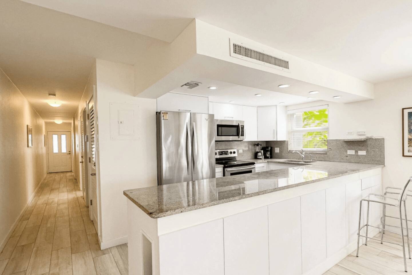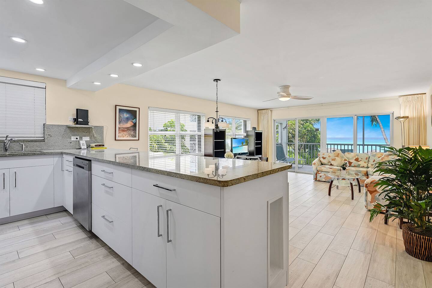 Designed for comfort and style, this beachfront condo features two spacious bedrooms—luxurious king bed in the primary room and a versatile second bedroom with a twin sleeper and queen bed—ideal for honeymooners, couples, families, or groups. The modern, fully equipped kitchen makes it easy to indulge in your favorite meals while soaking in the spectacular vistas.
