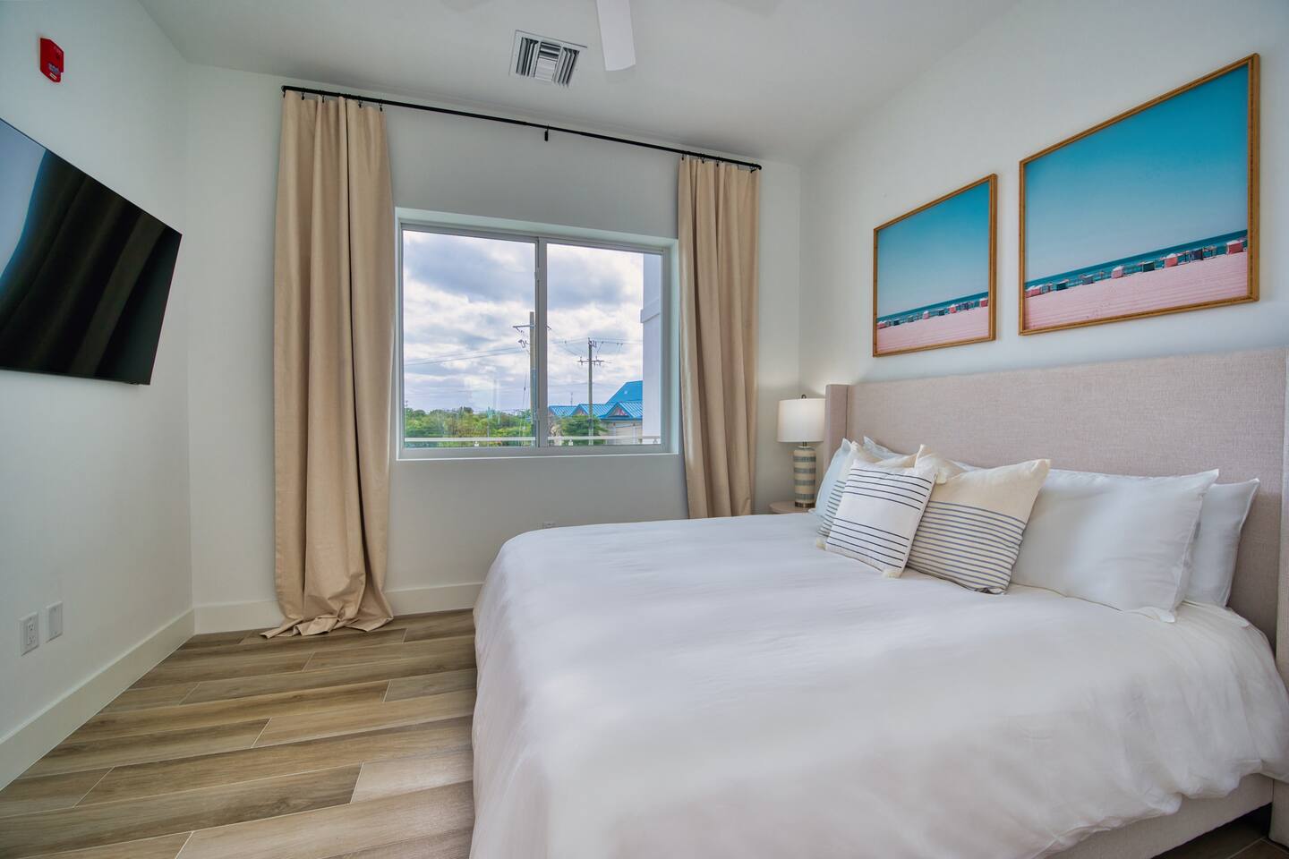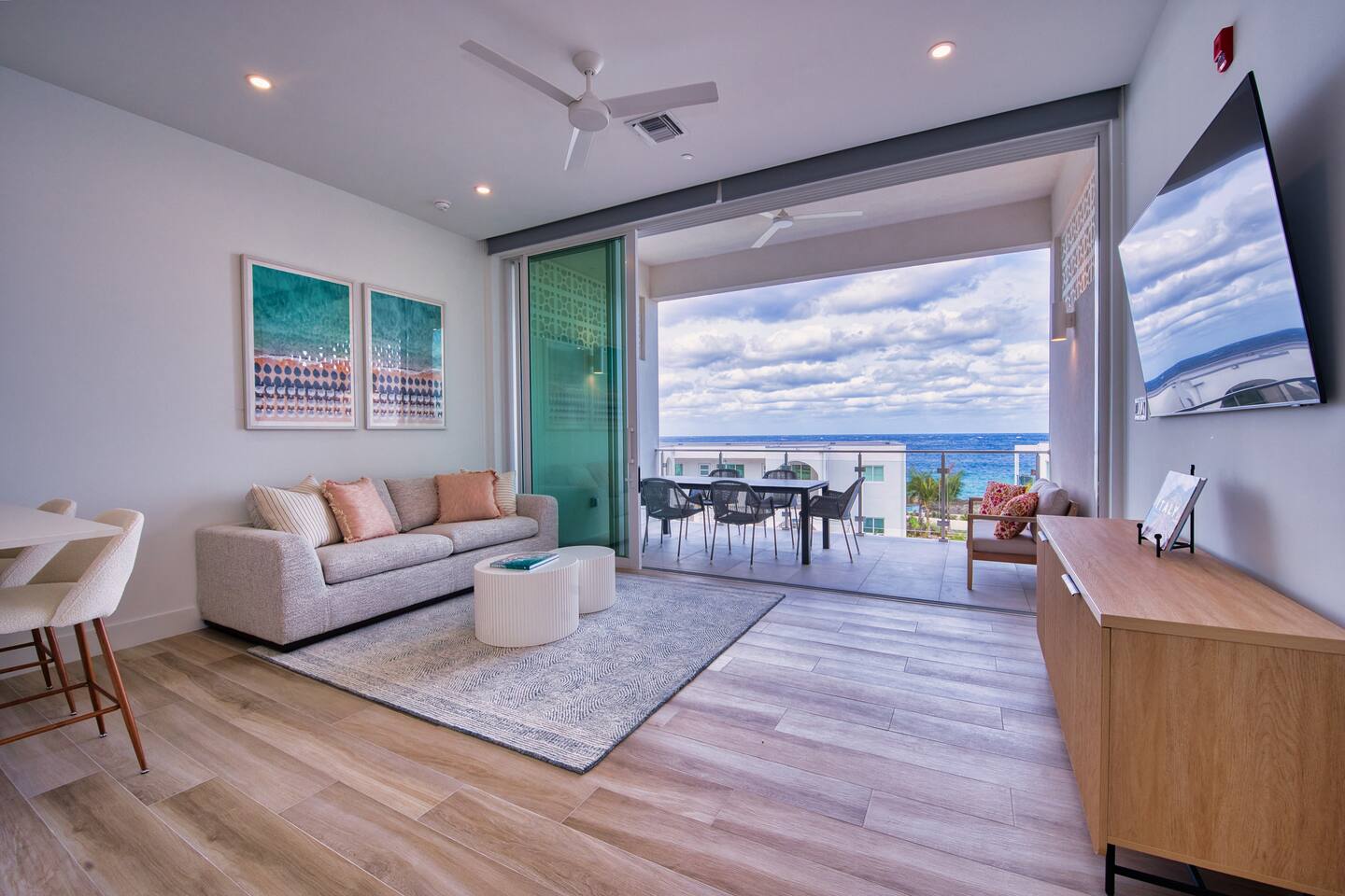 I don’t think we’ve stayed somewhere before that has so much natural light and coupled with the view of the ocean it’s just enchanting. There is an extra large balcony that gives you a wonderful outside space to eat and take in the vista which is never the same, continually changing but always so beautiful to look at . Oh and we caught ISS on several nights orbiting the earth over west bay ! The apartment was perfect for us, we stayed for more than 3 weeks , did washing , cooking and everything worked fine , save for a couple of issues with consumables that Kevin responded to immediately and the batteries/filters were replaced in no time. The outside pool space and gym were excellent, we used them frequently and were often the only souls around. Sunset point is extremely well appointed, is super quiet, relaxing and peaceful - can completely recommend the apartment and its host .