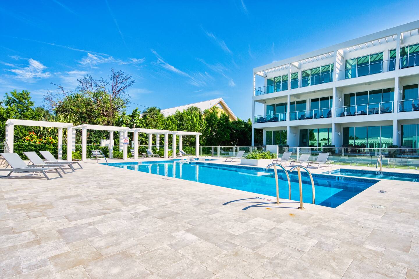 beautiful bright condo right by the pool. Tiki bar next door was fabulous. Dive tech scuba was 3 minutes away. Closest sandy beach is West Bay, 10 minute drive. Rental car definitely recommended. Lots of beach and pool towels as well as beach chairs and umbrella. Unit was super clean and comfortable. Kevin was always responsive and recommended excellent local spots for food and drinks. We will definitely stay again.
